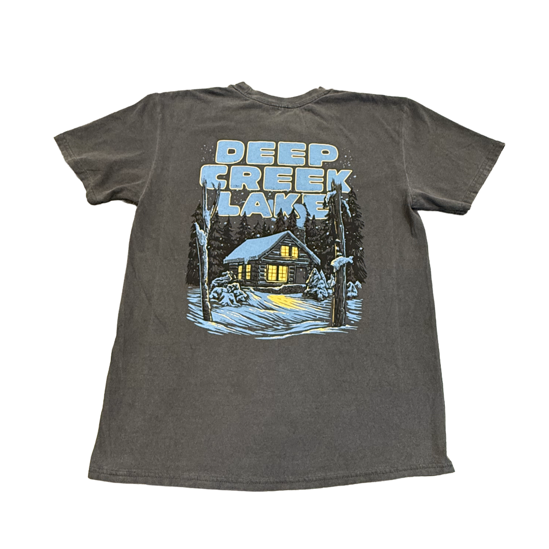 Deep Creek Lake Snowy Cabin Cotton Tee - Unisex